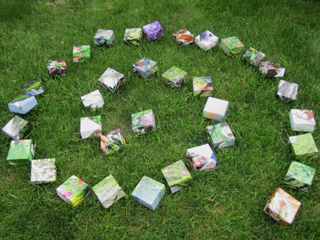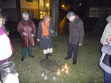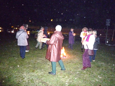 Es war ein wunderbares Fest.Nach den Reden tanzten wir unter Anleitung von Judith Sablowski (www.judithsablowski.de) zum Spriallabyrinthplatz. Heike Vullmer unsere Feuerhüterin wartete schon beim Feuer, welches sie und der Wind in Gang hielten. Es waren schon fast mysthische Momente, mit den Kerzen in der Hand bei leichtem Nieselregen und Wind uns im Gleichklang Richtung Feuer zu bewegen. Eine Feierlichkeit machte sich breit und ich hatte das Gefühl, als ob die Erde selbst weich und weit wurde.
